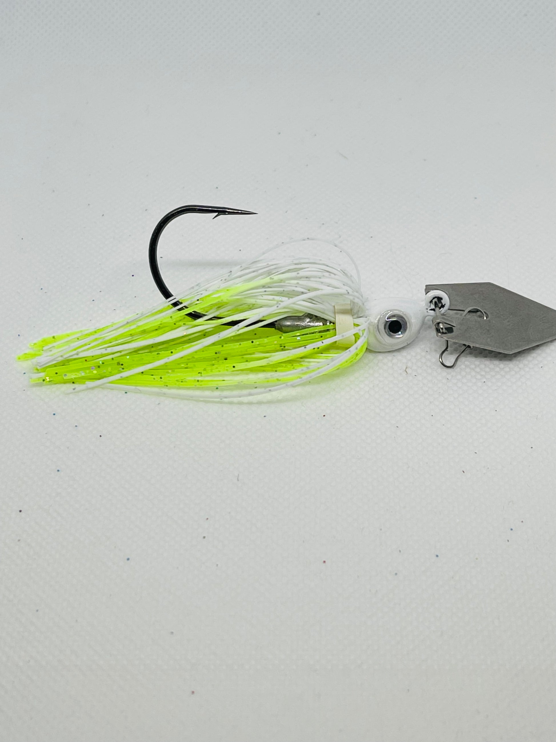 Built around a premium 5/0 Mustad UltraPoint hook, the Juicy Jigs Bladed Jig also includes lifelike 3D eyes, a handcrafted silicone skirt, and an aggressive staggered double-barb keeper that locks your trailer in place. Add in a direct blade-to-jig connection (no split ring) for even more “chatter,” and an unbeatable price tag, and you’ve got the only bladed jig you’ll ever need.